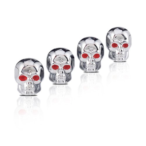 BEST DISCOUNT Set of 4 Skull Head Chrome Plated Valve Caps Auto Car